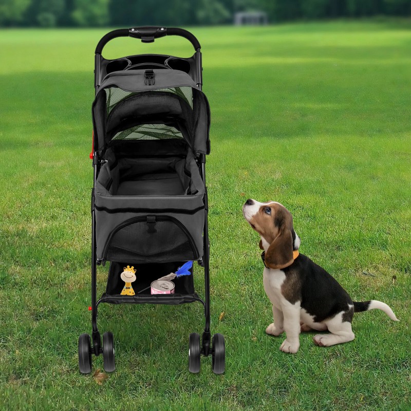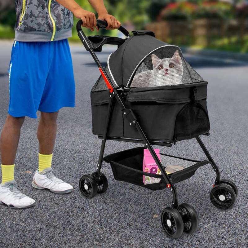 Foldable Pet Cart 4 Wheel Small/Medium Dog Cat Carrying Cart Puppy Carrier Black