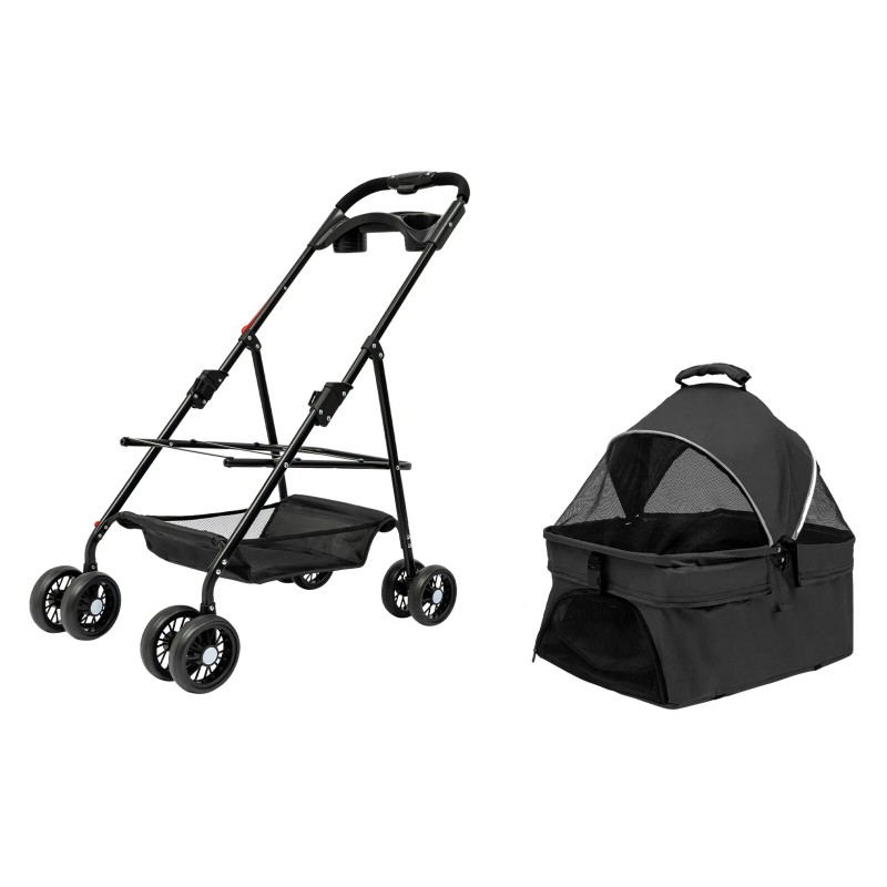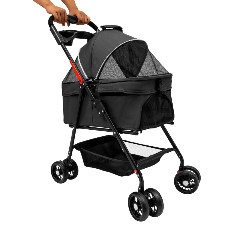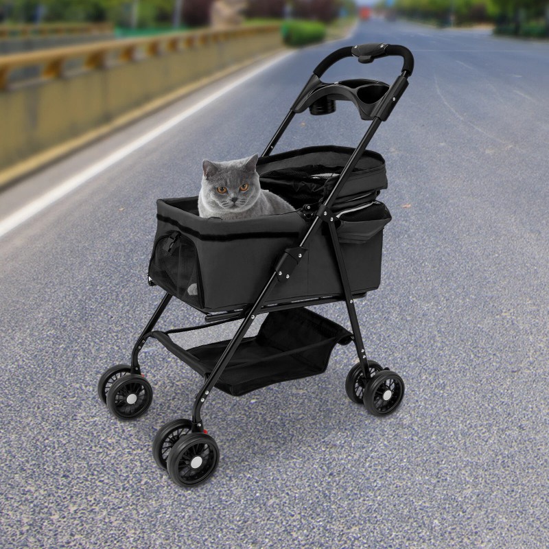 This foldable pet cart is a handy assistant in your life. It can easily accommodate small and medium-sized dogs and cats, and can also be folded into a small size for easy storage. It is mainly made of high-quality carbon steel and Oxford cloth, which is durable, safe, and reliable. Whether you are out for a walk with your puppy or shopping at the mall, it will meet your needs. Choose one now to make life easier and more convenient!