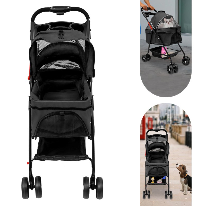 Unbranded Foldable Pet Cart 4 Wheel Small/Medium Dog Cat Carrying Cart Puppy Carrier Black