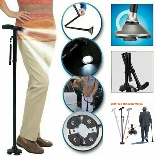 - Features: Foldable, LED Light, Lightweight, Wrist Strap, Adjustable Height