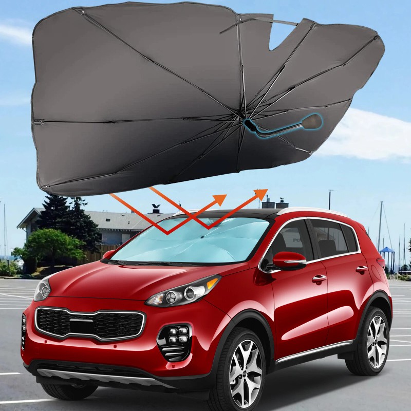 1. High-Quality Material & Durable Design - This umbrella is made of silver coated cloth and black steel bone. These types of materials ensure the reliability and durability of this car sunshade umbrella. Its design - the silver coating and black back can efficiently protect the interior of your car from UV rays, sun glare, to lower the temperature in the car, which makes you comfortable.