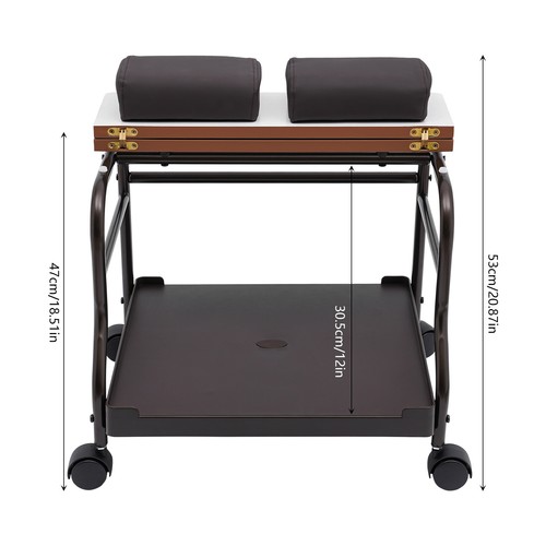 Application It can be used in beauty parlors, medical clinics, hair salons, home bathrooms, etc. and is suitable for the elderly, women, and adults, etc. Specification Color: Coffee Material: Iron, Wood and Plastic Process: Baking Paint Number of Pieces: 1 Assembly Required: Yes Mounting Type: Floorstanding Recommended Uses For Product: Indoor Target Audience: Unisex Adult Caster Type: Swivel Load Capacity: About 18kg/39.7lbs Gross Weight: 8kg/17.64 lbs Net Weight: 7kg/15.43 lbs Height From the Ground: 12cm/4.72inch Wood Plate Size: 52*32.5cm/20.47*12.8inch Bottom Plate Size: 45*42cm/17.72*16.54inch Product Size: 50*42*47cm/19.69*16.54*18.5inch Package Size: 67*52.5*17cm/26.38*20.67*6.69inch Package Included 1* Portable Foot Trolley 1* Japanese Instruction