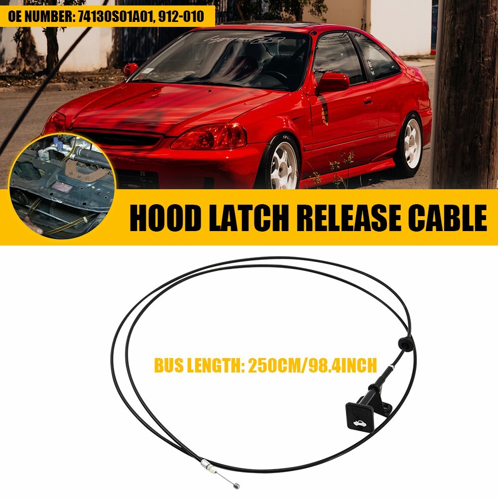 NEW Hood Latch Release Cable With Pull Handle Fits For 1996-2000 Honda Civic Fits for: 1996-2000 Honda Civic Specifications: OE:74130S01A01, 912-010 Features: *High adaptability Manufactured according to strict specification to match with your vehicle perfectly. *High durable Made of superior material with good stability,durability and impact resistance to ensure its long service life and high durability. * All tested before shipment All products were tested for performance and to ensure the accurate parameter for your vehicle. *Warm notice Please double-check the part number and models in the description to guarantee it fits your vehicle before ordering. Packaging include: 1 X Hood Release Cable with Handle Pull