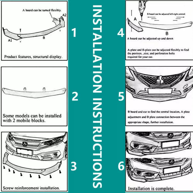 • Type: Front Bumper Lip Spoiler Splitter Protector Kit