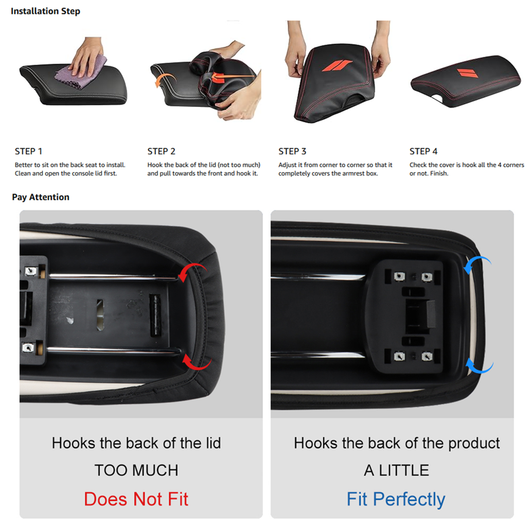 - Easy to use: The edges are made of high elastic rubber band, first pass through the rubber band from the bottom, and then wrap the entire armrest box directly for a perfect fit.