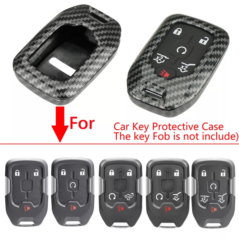 Unbranded For Chevy Silverado Suburban Tahoe Carbon Fiber Key Fob Case Cover + Keychain