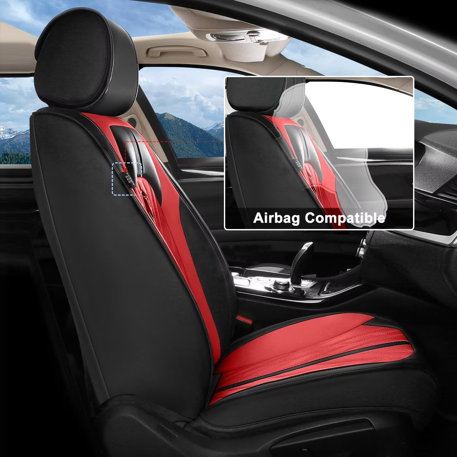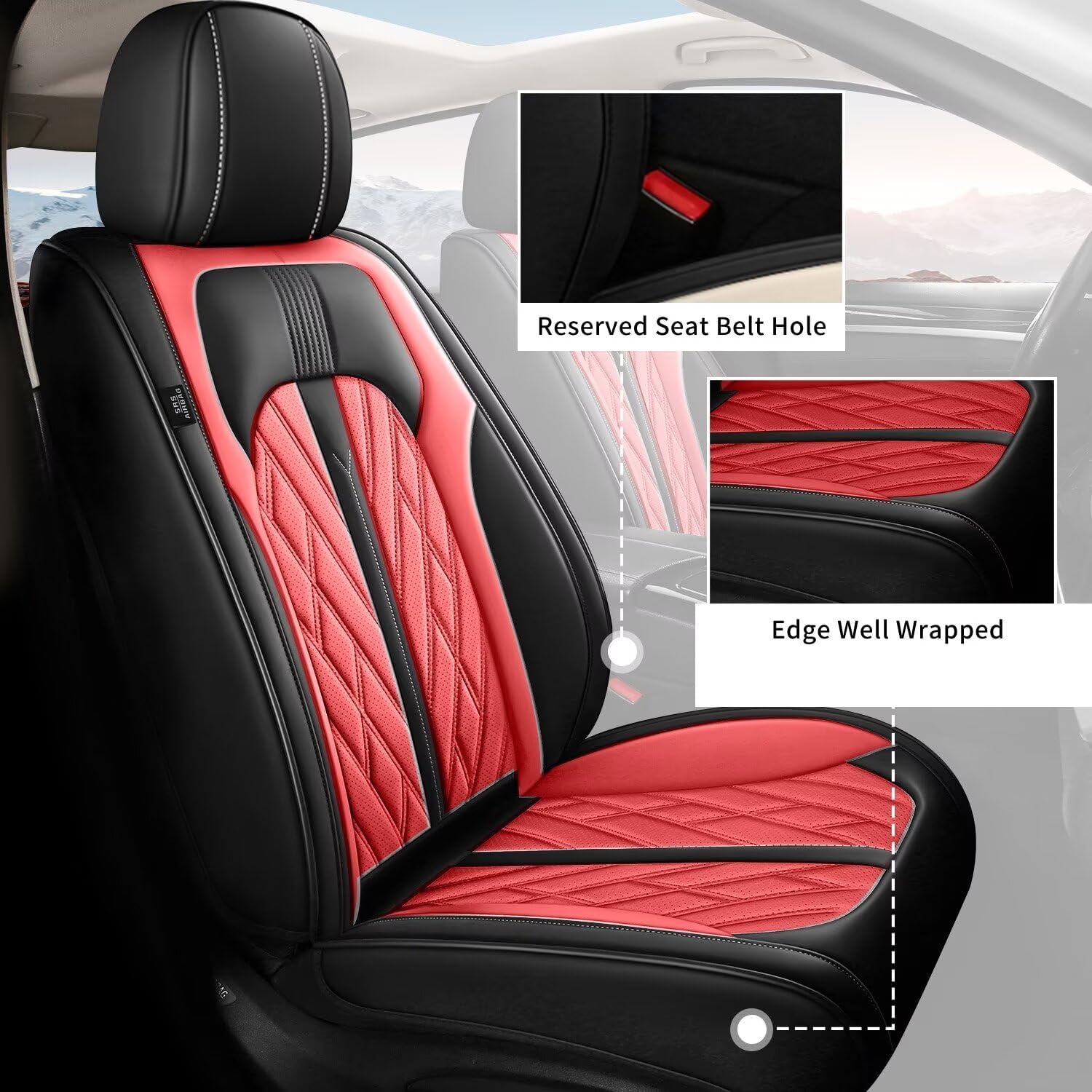 Material: Premium faux leather is durable, breathable, comfortable and has good waterproof. The interior of the seat cover is filled with sponge, the appropriate thickness allows you to sit for a long time without getting tired.