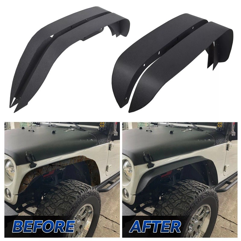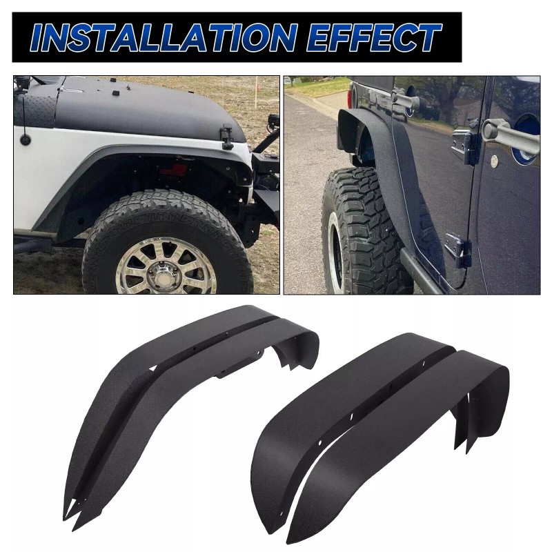 This is For 2007-2018 Jeep Wrangler JK 4PC Textured Black Steel Flat Style Fender Flares.
