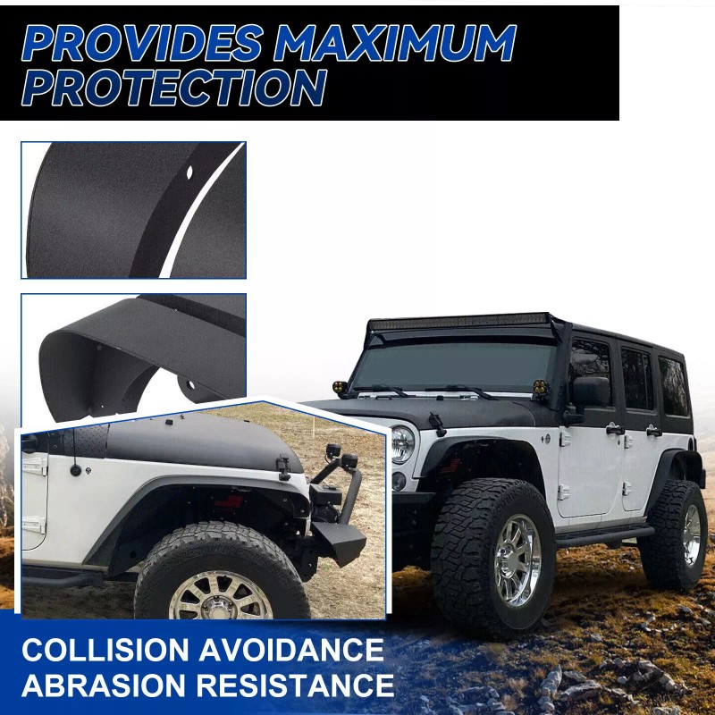 For Jeep Wrangler 07-18 JK Full Set Flat Style Solid Steel Fender Flares