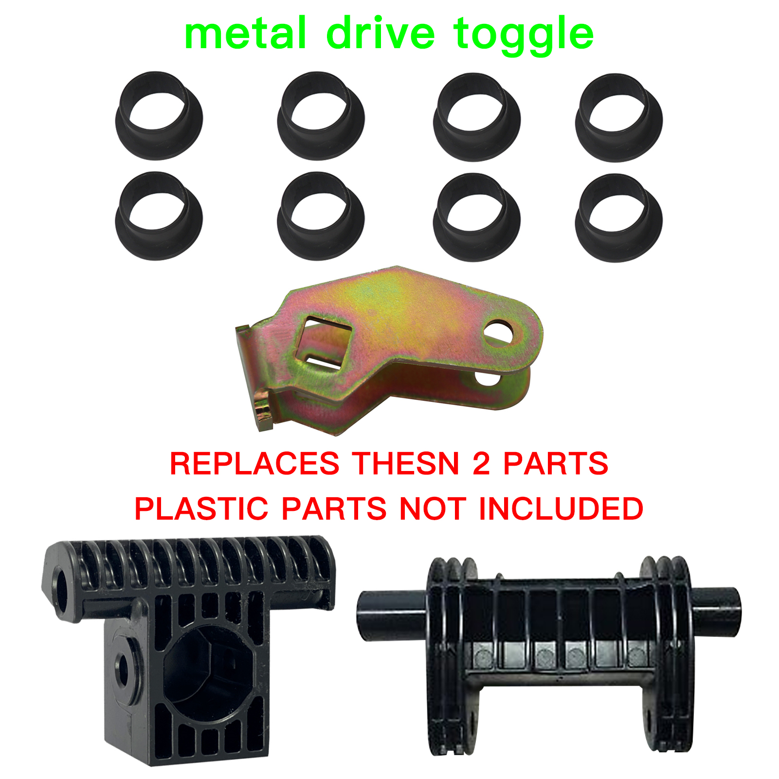 New steel replacement part to replace plastic parts prone to failure. This one metal part replaces both the plastic drive toggle and motor clevis mount at the same time. Simple one piece design with no additional screws or moving parts to fail. If one of the two plastic connectors in your chair has failed the other is usually not far behind! Includes 8 plastic spacers. Requires removing the main drive rod of the chair.