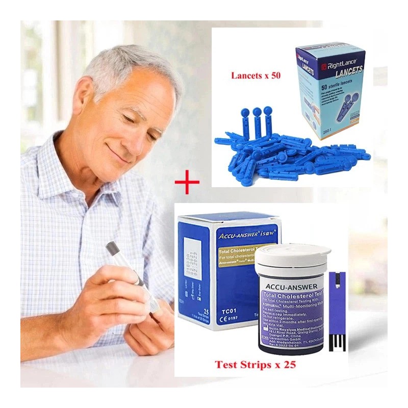 25 Test Cholesterol Test Strips for ACCU-Answer 4-in-1 Test Meter, 50 Lancets Total Included.