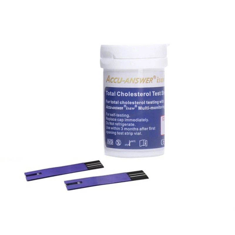 Description: ACCU-ANSWER® isaw® Total Cholesterol Test Strips are used with the ACCU-ANSWER®isaw® Multi-Monitoring Meters and Systems for quantitatively measuring total cholesterol in fresh capillary whole blood or Venous blood. ACCU-ANSWER® isaw® Total Cholesterol Test Strips and the associated meters are intended for use outside the body(in vitro diagnostic use) by people at home and health care professionals in the clinical setting.