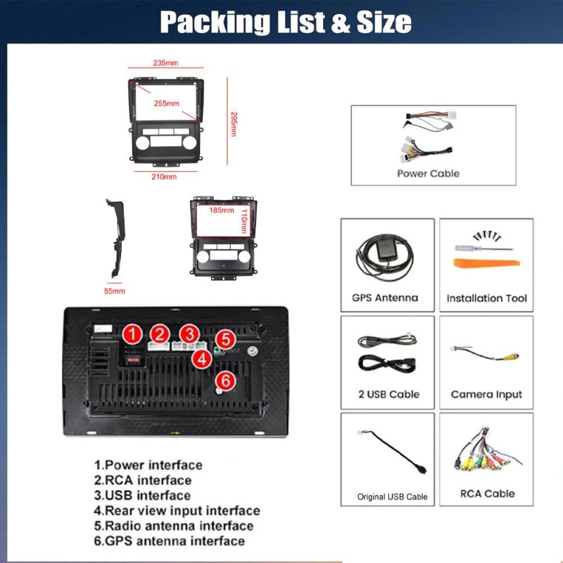 ●Double USB port: Plug in USB flash drives or hard disks to the device via USB ports, and play music, videos, photos, etc. on the device. You can also charge your devices via USB ports.
