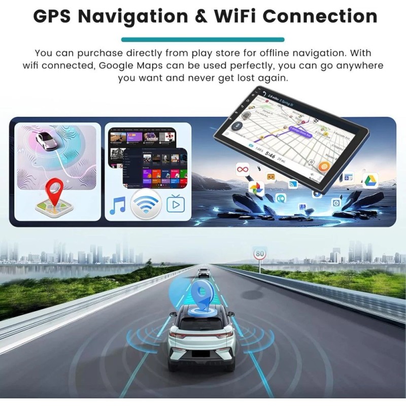 ●GPS: Navigate with accuracy and ease with the built-in GPS module, which supports online and offline maps. You can also use voice guidance and real-time traffic information.