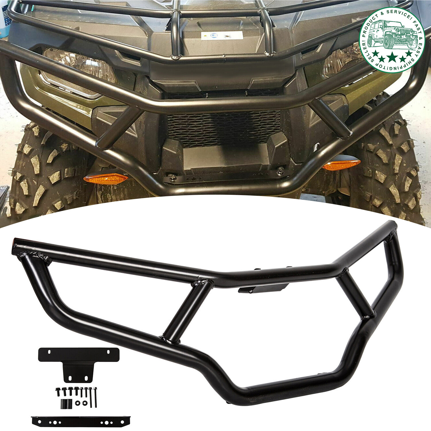 It is made of sturdy tubular steel, it also serves as a grab or lift handle and is a good place to hang tools or rope while you are out riding.Finished in gloss black, this brushguard is made from sturdy, tubular steel to withstand rocks, branches and those occasional encounters with immovable objects.Protecting the front and rear of your Polaris Sportsman 570 and 450 ATV is easy with the Polaris Front Brushguard.Integrated mounting location for easy installation and accessory lighting