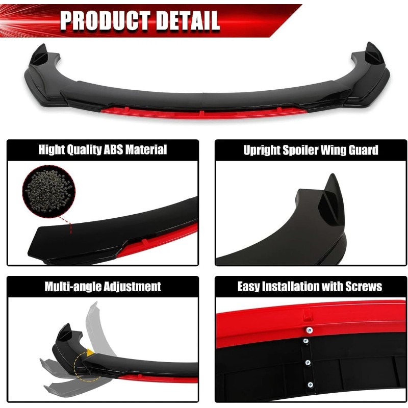 • Contents of the package: 5Pcs Front Bumper Lip Splitter++Strut Rods