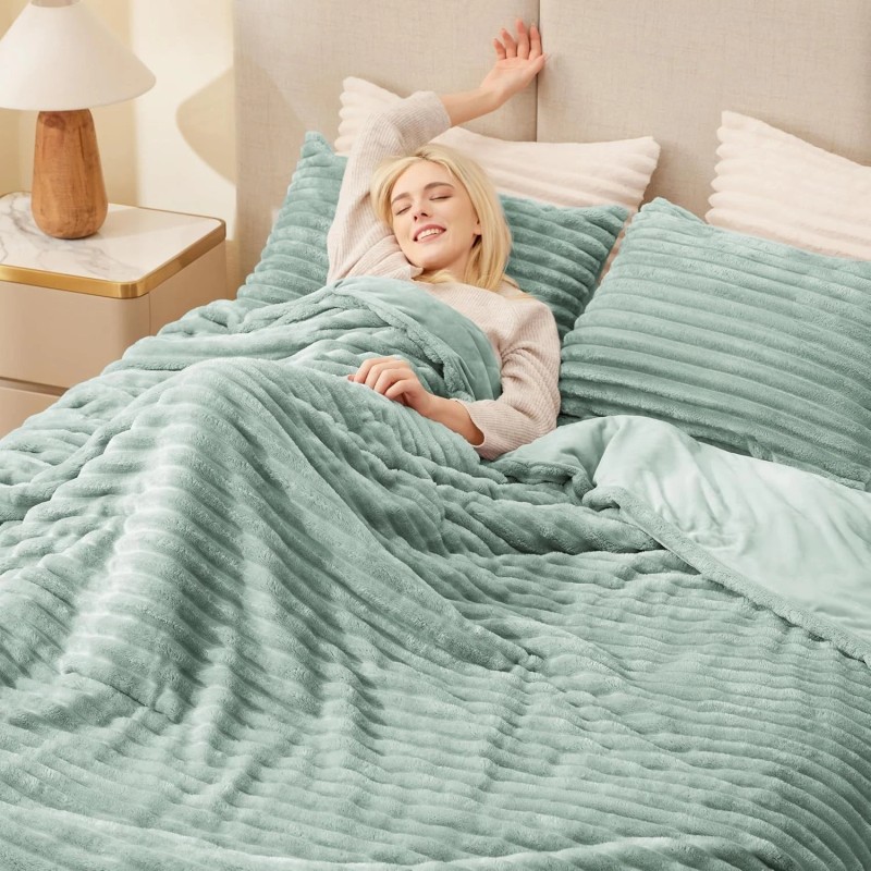 - Ultra-Soft Flannel Material:Experience the luxurious comfort of our fluffy bed comforter set, crafted from premium flannel fabric. The ultra-soft texture provides a gentle, cozy feel, perfect for snuggling up during chilly nights. This flannel material is known for its warmth and durability, ensuring you stay comfortable and cozy all year round.