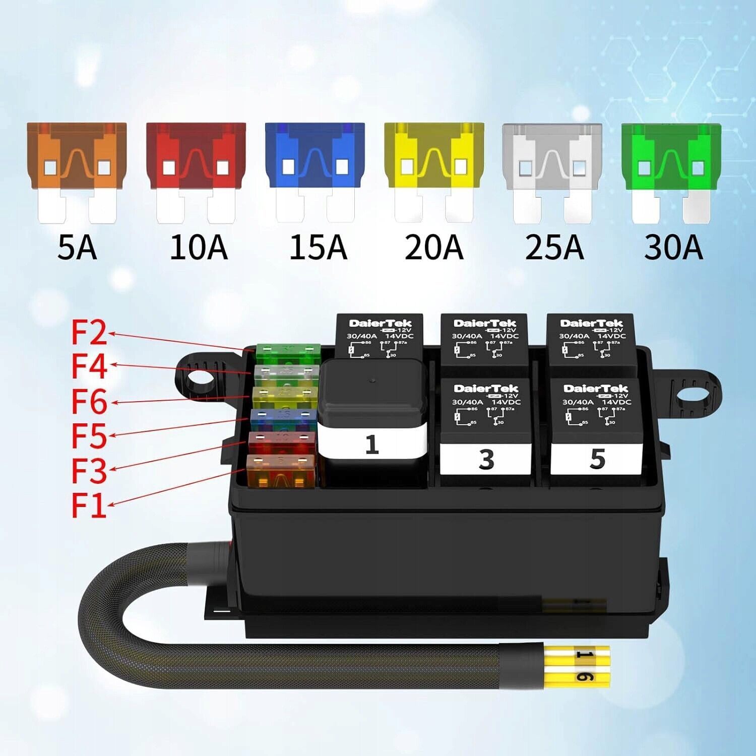 Unbranded Fuse 12V 4-pin 40A Relay Box Pre-Wired 6 Relay Slots and 6 ATC/ATO Fuse Holder
