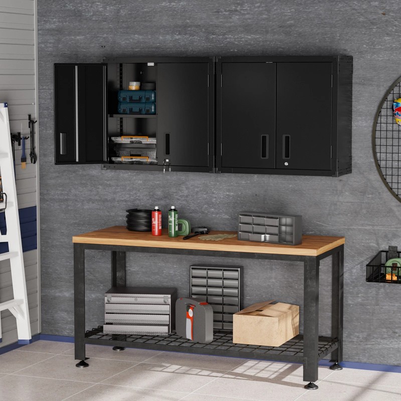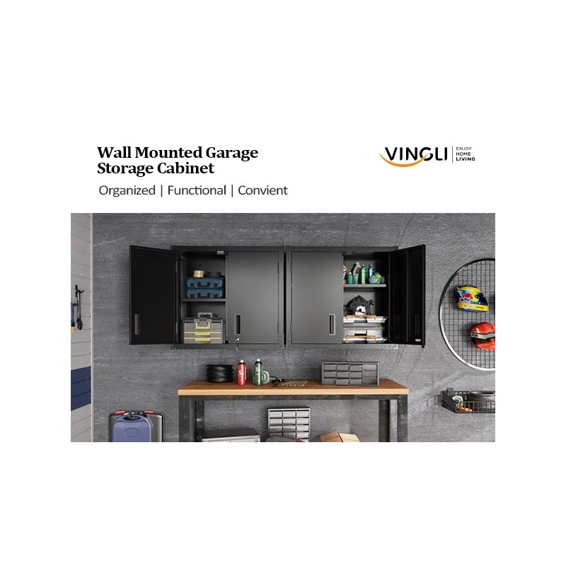 【Adjustable Shelves】The garage wall cabinet with adjustable shelf meets your storage needs for items in different sizes. And the fixed shelf(the bottom shelf) adds the stability of this metal storage cabinet