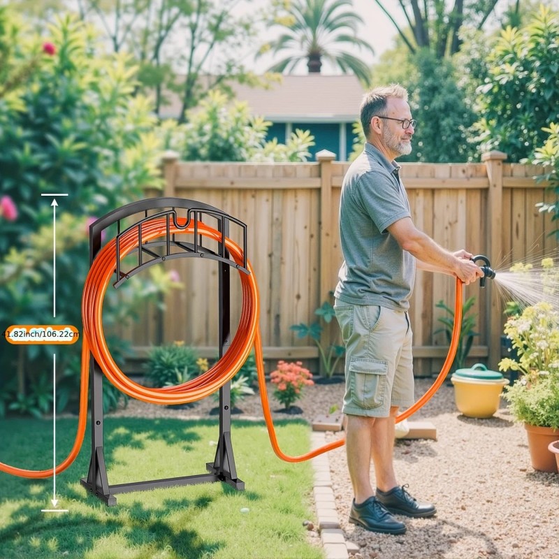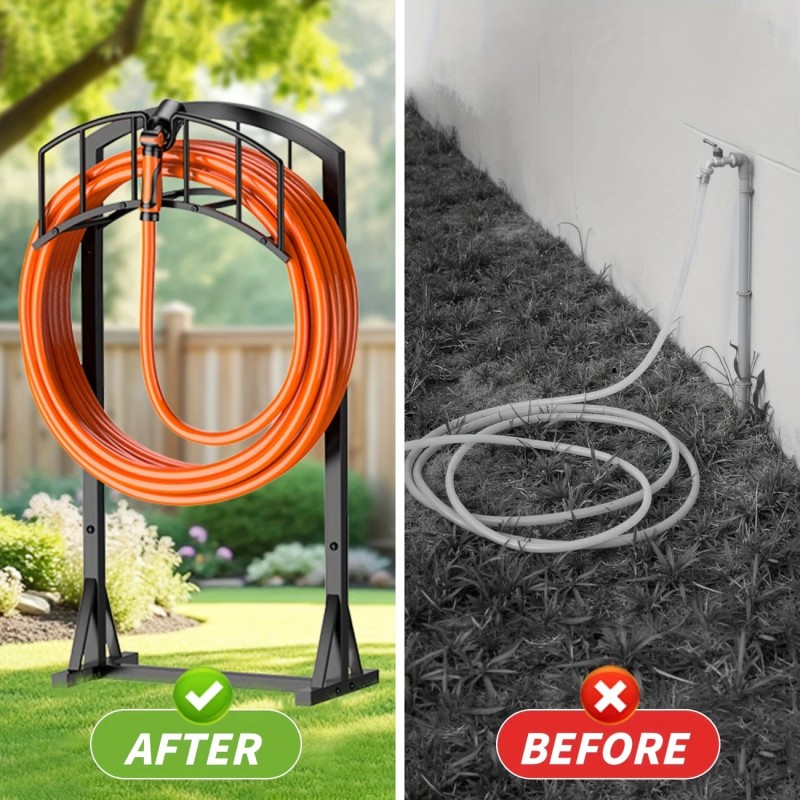 【Heavy Duty & Rustproof】Made of high-strong thickened steel material, the water hose holders stand for outside are coated with a premium rustproof powder coating, and the screws are made of stainless steel to ensure rust and weather resistance.