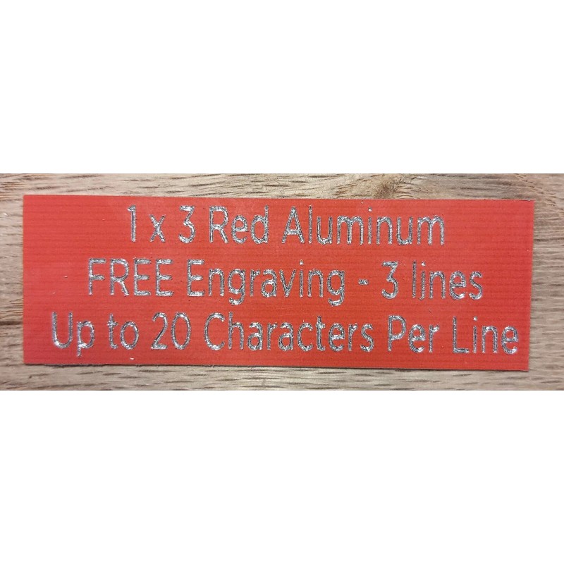 This 1"x 3" RED aluminum plate can be ordered blank or engraved with what you would like in 4 different shapes. Holes are available at no additional charge, please provide spacing. If you would like it engraved this plate holds up to 3 lines of about 15-20 characters per line. These are approximate. Let me know if you have any questions. The pictured plate has a red surface that engraves silver. Other colors of aluminum plate are also available. Our font choices include Roman, Gothic, cursive, Old English, and Helvetica but almost any font can be used. If no plate color or font is specified when ordering, a blue plate with Roman font will be sent. *Please, send me a message with your instructions EXACTLY as you would like them after purchasing. Instructions left at checkout through **Also, if you would like your plate blank, please let us know. We will NOT mail any plates blank without being specifically asked.** We cut our own plate, so custom sizes ARE available. As always, ALL engraving is FREE!! (this is REAL etching engraving in metal not printed or painted on). Shipping: These plates are mailed in regular first class envelopes, so I can keep our costs low for you. Tracking does NOT come with this. If you would like tracking it will be an extra $4.50 for a first class package. (Orders of 10 or more plates will automatically be upgraded to a first class package with tracking.) Please check My other items for different quantities. You can order any combination of colors, sizes and inserts. Unlimited Quantity discounts are available. For plaques, please note what activity, sport or organizational insert you want. Some inserts available are: Gold stamped: Archery, Baseball/Softball, Basketball, Bowling, Cheerleader/Poms, Football, Golf, Gymnastics(F), Lamp of Learning, Pool, Track&Field, Volleyball. Burst: Chess, Spelling Bee, Wrestling, Hand Gun/Pistol. Flag background: Torch. Organizations: Boy Scouts, Cub Scouts, Girl Scouts, FFA, Fire Dept., 4-H, Jaycees, K of C, Kiwanis, Mason, VFW, YMCA. Reliefs: Eagle, Gavel, Shovel, Star. Also include a phone number so we can contact you if we have any questions. You can order any combination of colors, sizes and inserts. Quantity discounts are available. If you need more than the amount it says is available contact us, we have all you need. Discounts for quantities. I am a family owned and operated business. Building custom quality signs and awards for almost 20 years. 4 Day or less turnaround time! (Not counting date order is received or date shipped.) Shipping time varies. Feel free to contact us for more specifics. |
