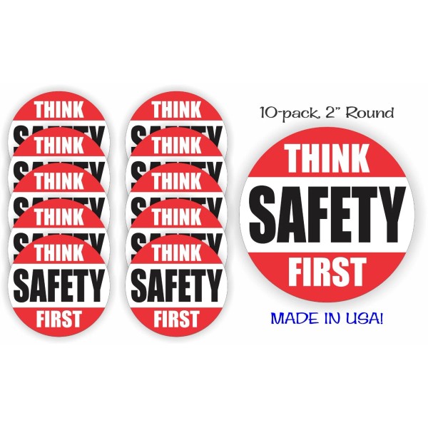 Unbranded/Generic 10 pack THINK SAFETY FIRST 2" Round Hard Hat Stickers Decals Construction Helmet
