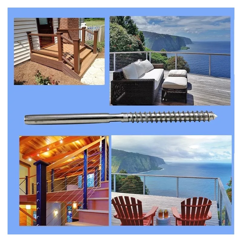 Unbranded/Generic 2 PCS~T316 Stainless Steel Lag Stud Swage Fitting Cable Railing for 3/16" Cable