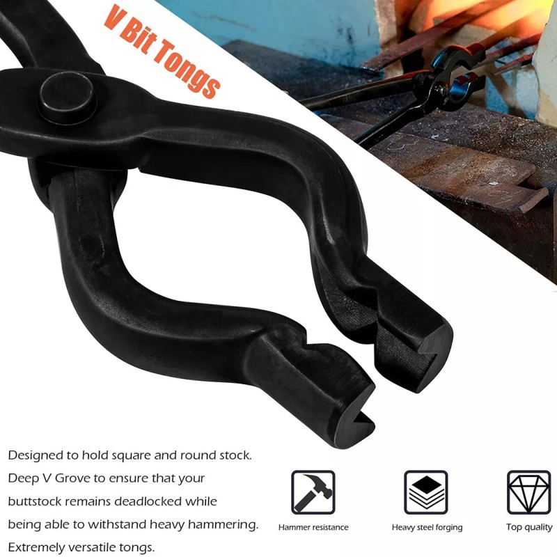 Unbranded/Generic Beginner Knife Making Blacksmith Tongs Hammer Tools Set Bladesmith Anvil Forge