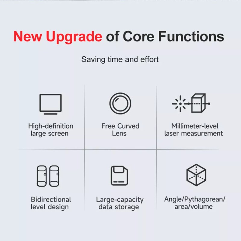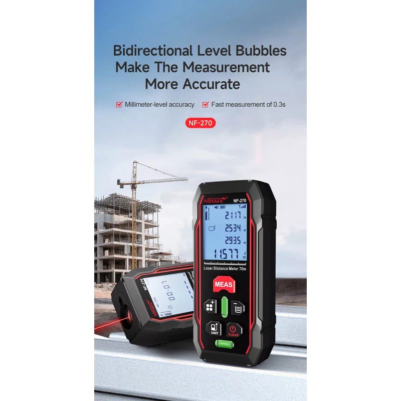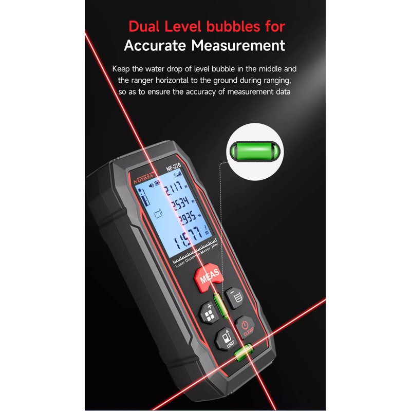 【Multiple Measurement Functions】NOYAFA NF270 digital measurement tool can measure area, distance, length, , continuous measurement, Pythagorean Theorem - three points, addition and subtraction, low indication, more accurate than standard distance measurement tools.