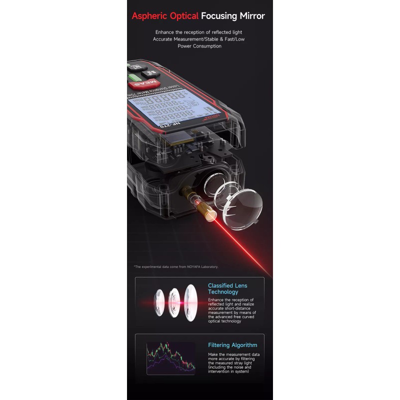 With utilizing technology spectroscopic technique, NOYAFA upgraded electric angle 70m digital distance meter is well built, accurate, greatly improves measuring and accuracy, makes your measurement more easier and smarter.