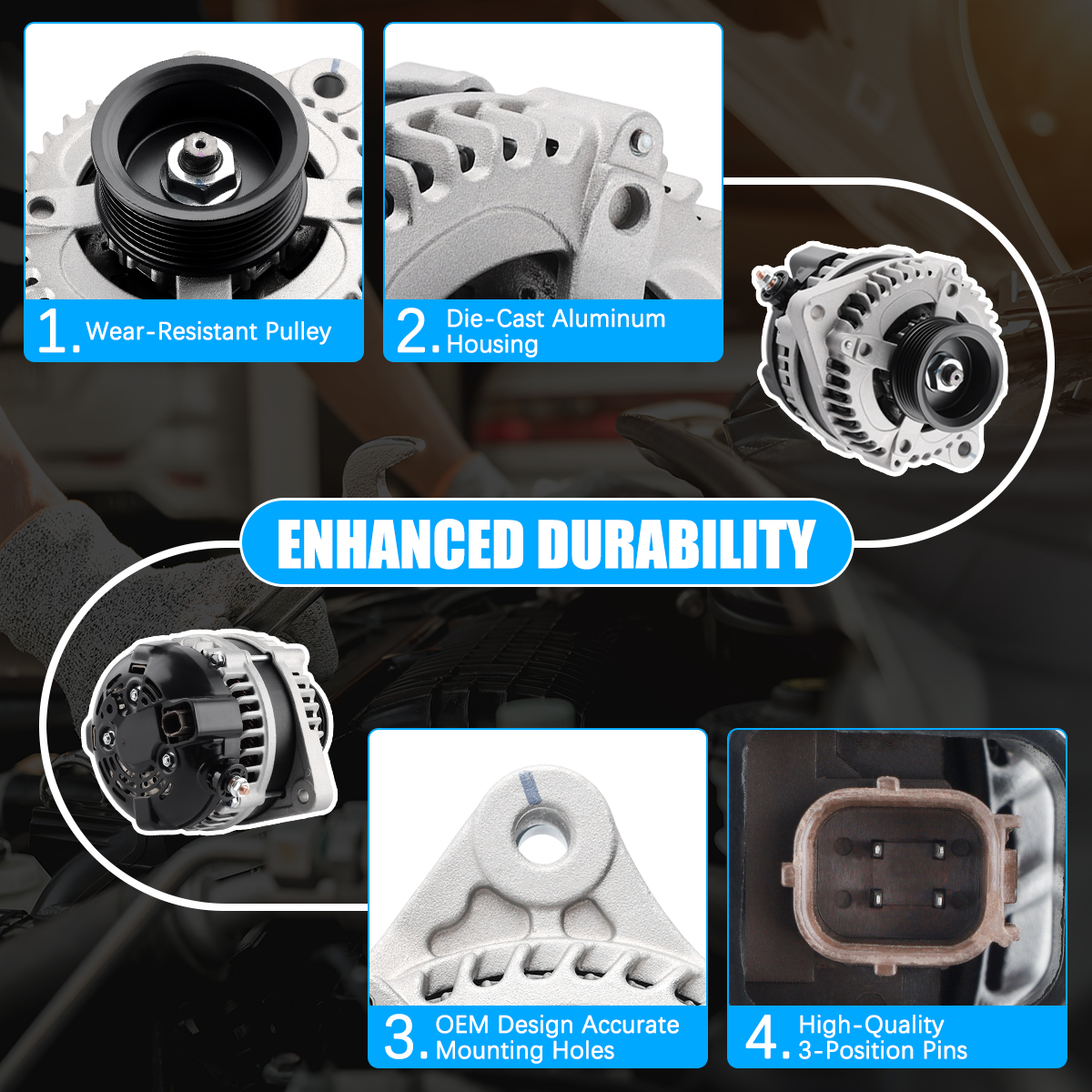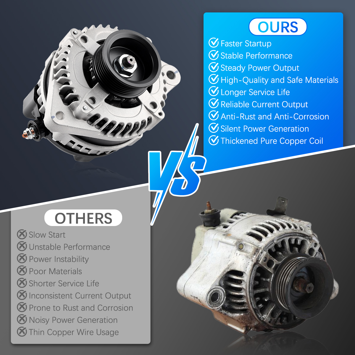 This automotive alternator provides high efficiency and reliability, ensuring stable power supply for your vehicle. It utilizes modern design and manufacturing technologies to deliver excellent performance and provide reliable power for various electrical equipment and charging systems.