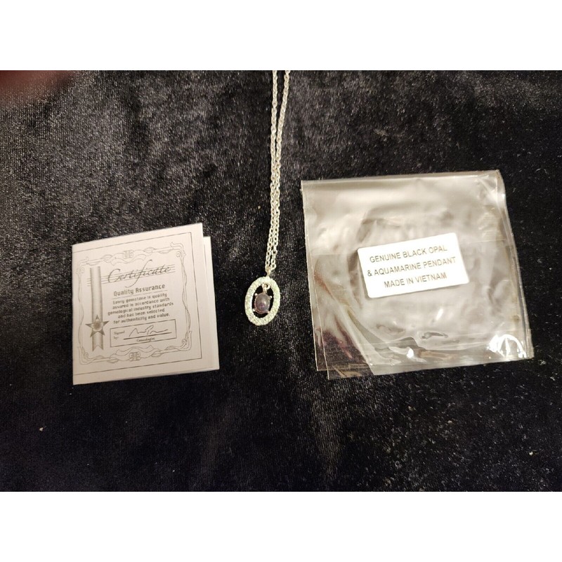 Unbranded Genuine Black Opal and Aquamarine Necklace Adjustable 18 inch Chain Maximum NEW