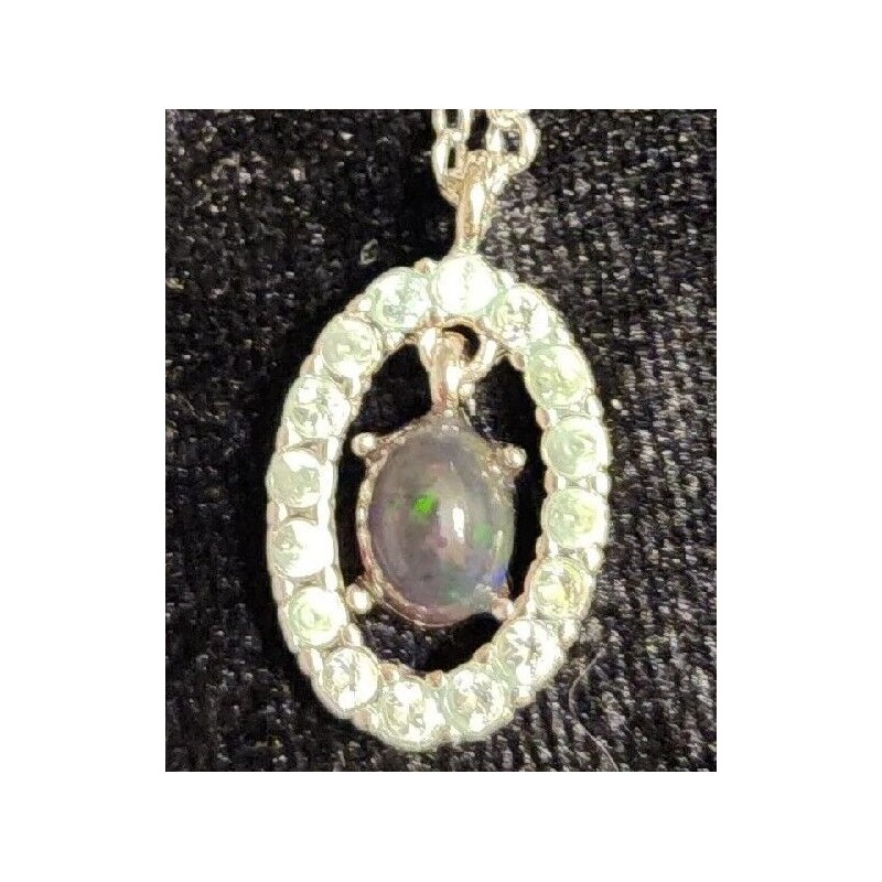 Genuine Black Opal and Aquamarine Necklace Adjustable 18 inch Chain Maximum.