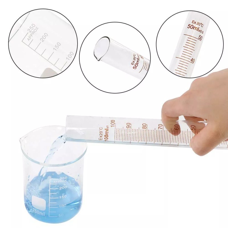 Glass Graduated Cylinder Beaker Set 10ml 25ml 50ml 100ml 250ml with Droppers