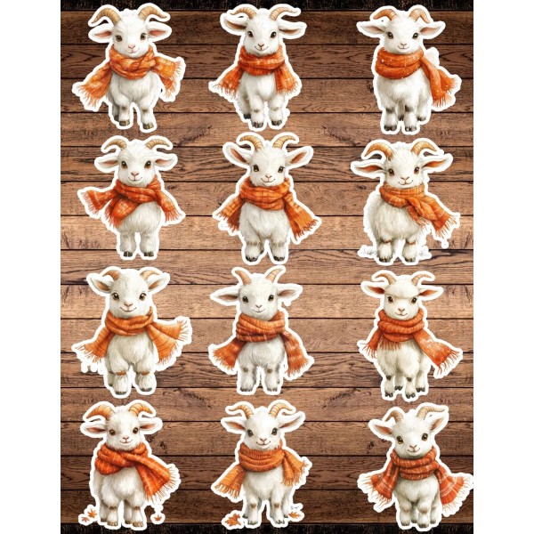- Detailed Artistry: Each sticker is designed with intricate details to highlight the playful and festive spirit of the goats in their cozy red scarves.