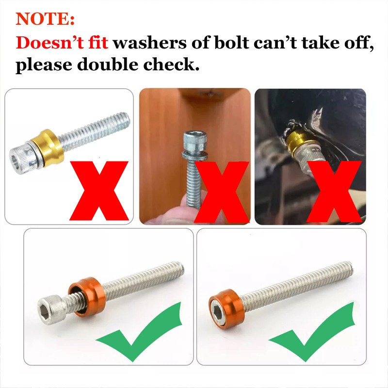 - NOTE 1: Doesn’t fit washers of bolt can’t take off, please double check