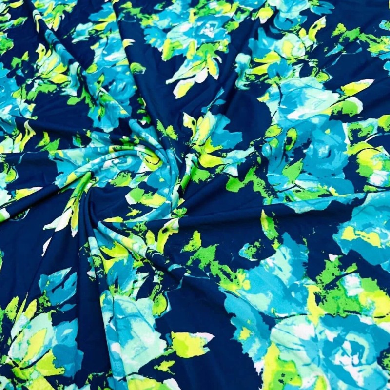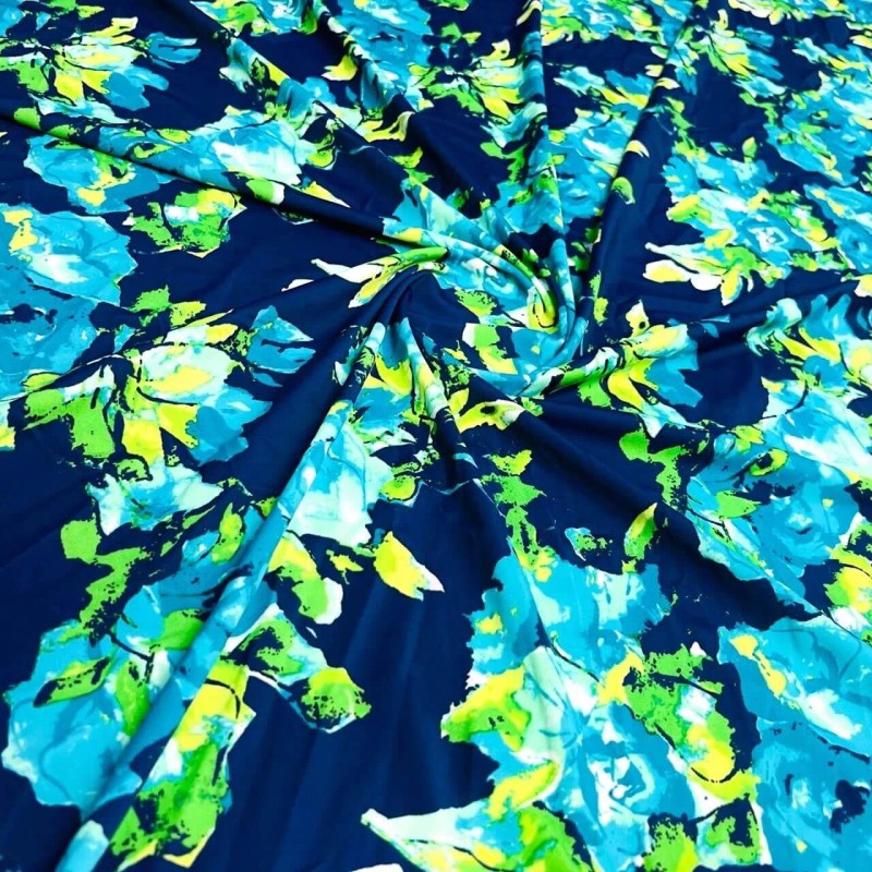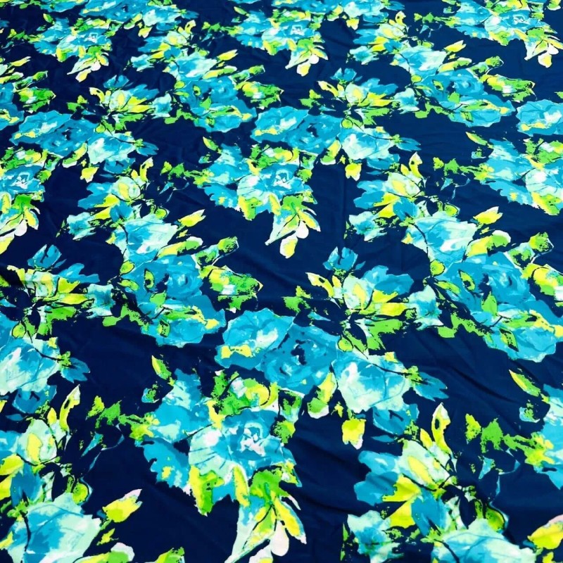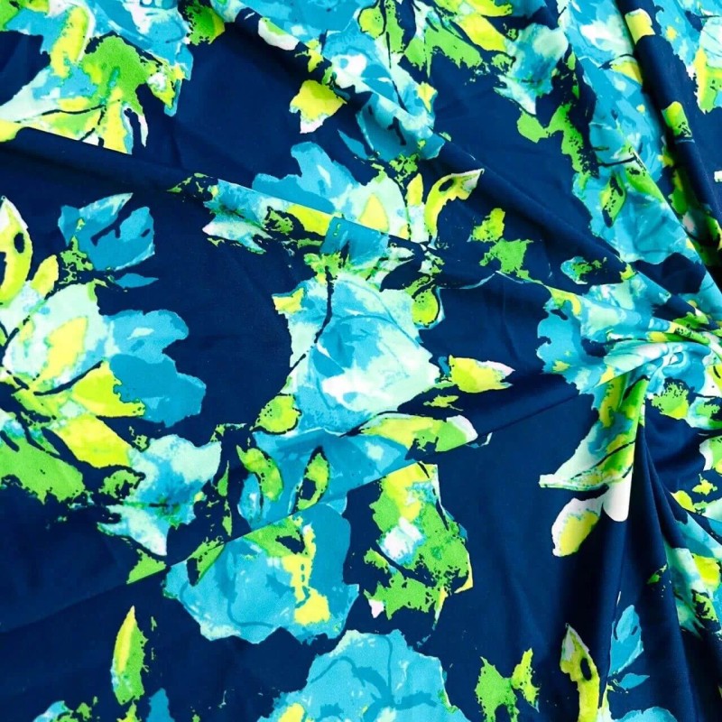 Unbranded Green and Blue Flowers Fabric 4 Way Stretch Fabric Spandex by Yard for Swimwear