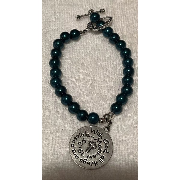 Unbranded Green Beads Toggle Bracelet w/Nuggets w/With God all things are Possible