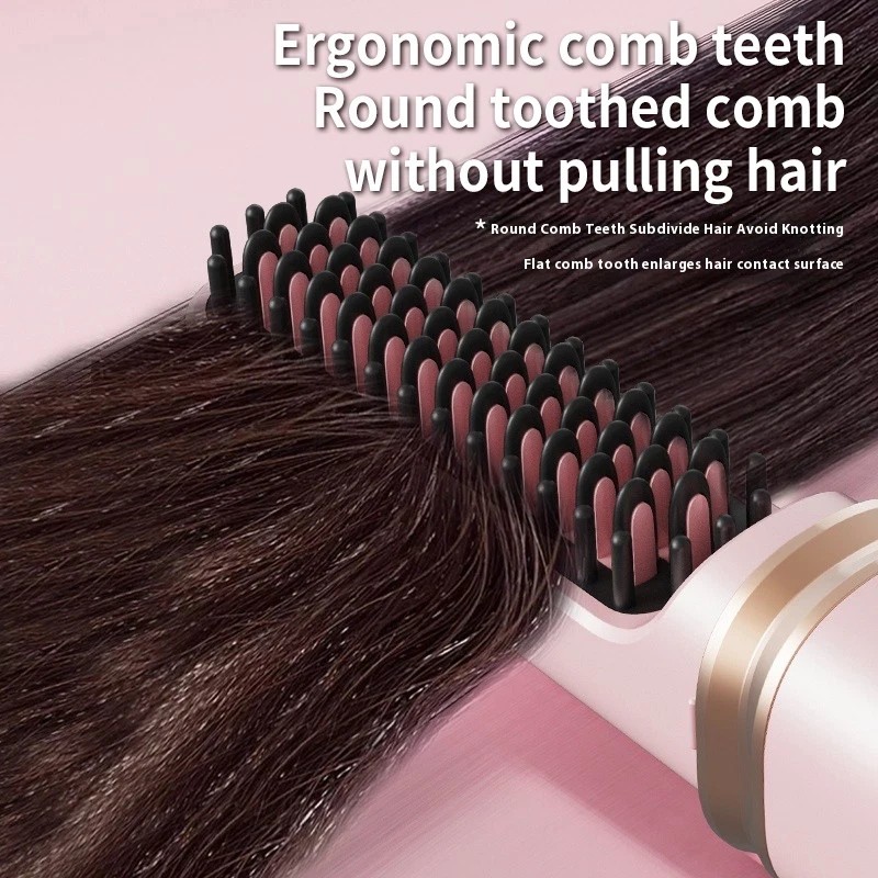 💇‍♀️ PTC Heating & 3D Brush Teeth - Our hair straightener brush adopts 3D brush teeth with PTC heating technology to deliver even heat, reducing 50% damage from heat and creates salon grades result without frizz.