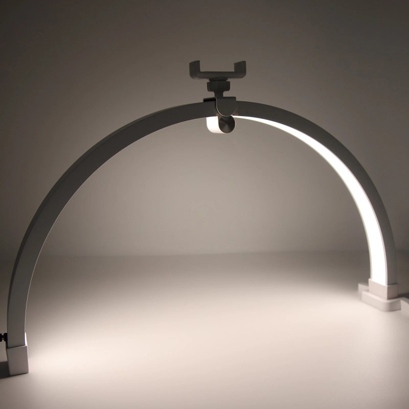 4. Touch Panel Control: The touch sensitive panel provides convenient operation. Long press to power on off the lamp, short press to switch color temperature, and use the plus or minus buttons to adjust brightness. The lamp also comes with a phone holder for securely fixing your phone, making it easy to record videos or livestream tutorials.