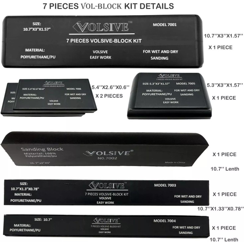 - Hand Sanding Block Kit: Everything you need for a pro-quality sanding job, conveniently packed in one comprehensive kit.It contain 1pcs-10.7inch x 3inch x 1.57in,2pcs-5.4inch x 2.6inch x 0.6inch ,1pcs-5.3inch x3inhc x 1.57inch,1pcs-Lenth 10.7inch(Model 7002),1pcs-10.7inch x 1.33inch x 0.78inch,1pcs-Lenth 10.7inch(Model 7004)