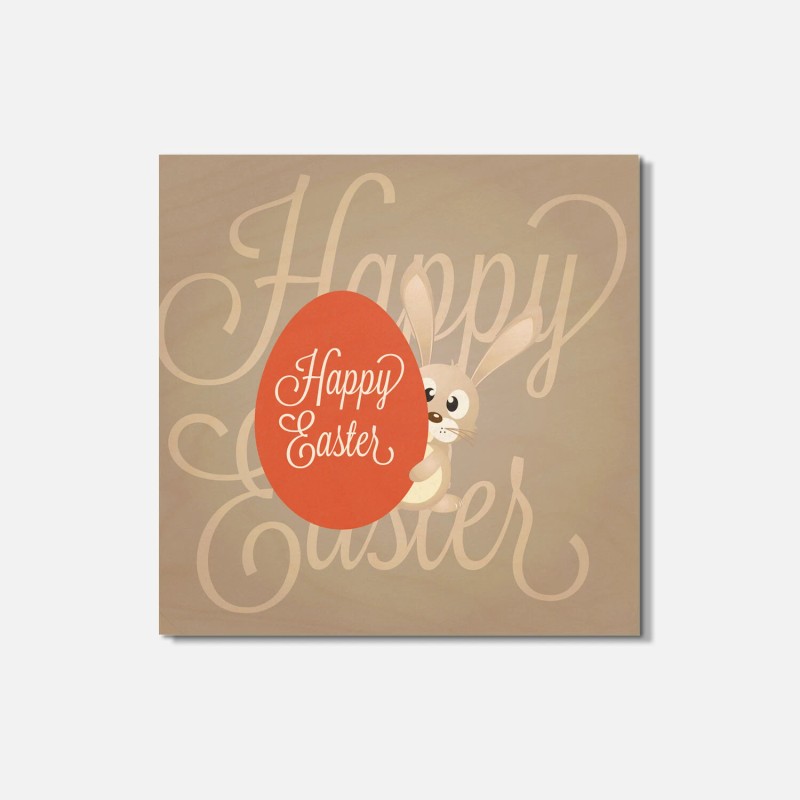 Unbranded Happy Easter Bunny With Egg 4'' X 4'' Square Wooden Coaster