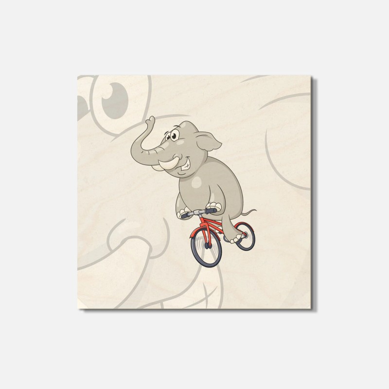 Unbranded Happy Elephant Riding Bicycle Animal 4'' X 4'' Square Wooden Coaster