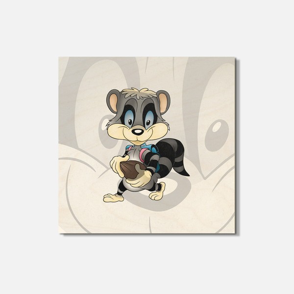 Unbranded Happy Raccoon Animal 4'' X 4'' Square Wooden Coaster