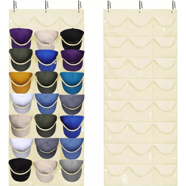 - 24 Deep Pockets: The over the door hat rack is deep enough so that your cap will not fall off! You can store several caps in one pocket according to your needs. Hat organizer for baseball caps with more pockets can help you store other accessories.