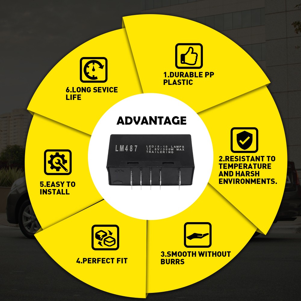 *Solve hyper flash This 10 pins led flasher relay can help you solve the problem of no turn signals in your car, or turn signal hyper flash, because they consume less power than incandescent lamps and can replace the load resistor.
