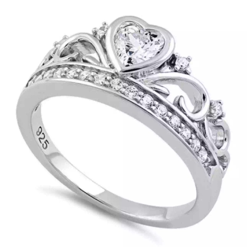 unbranded Heart & Crown CZ Sterling Silver Ring