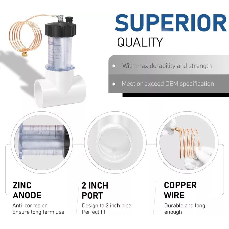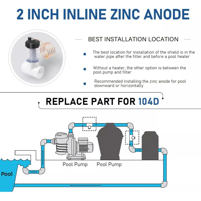 Unbranded Heavy Duty 2" Inline Zinc Anode 104-D with Coopper Wire for Saltwater Pool