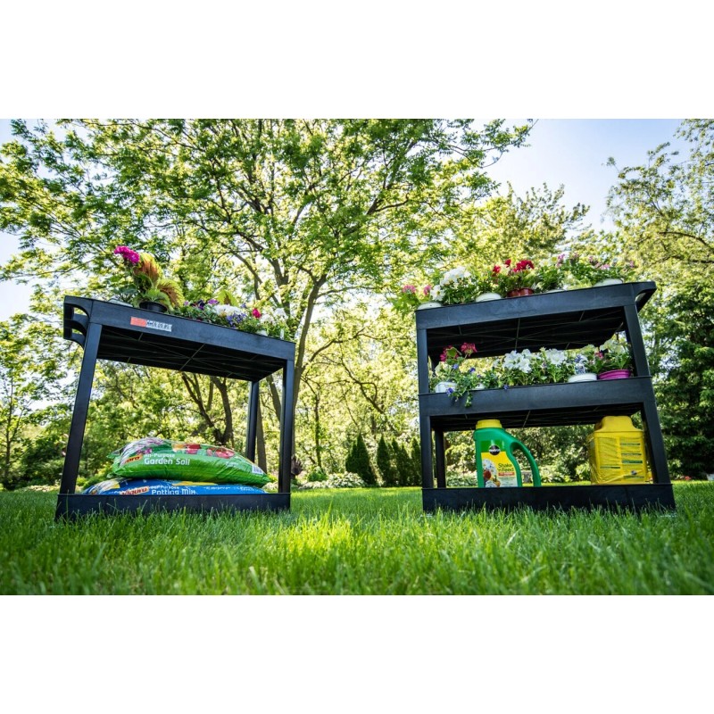 Molded plastic shelves and legs will never rust, dent, scratch, or stain