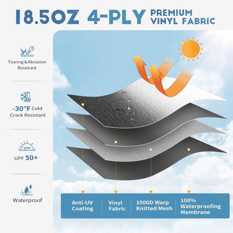 - PREMIUM RV AWNING FABRIC - Somokg RV awning fabric replacement uses 19.5oz 4-ply PVC vinyl for extreme tear resistance. Hot-pressing technology creates seamless, hole-free surfaces, while -30°F cold-crack resistance ensures flexibility in snow camping. Reinforced stress points add 3+ years longer lifespan than normal camper awning